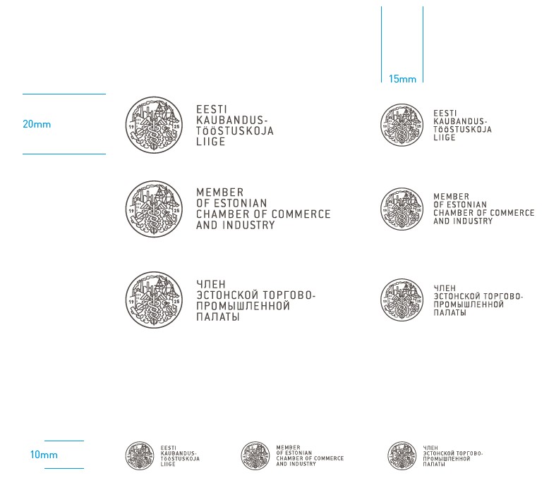 Liikmelogol on järgmised miinimumsuurused: 20mm, 15mm ja 10mm ning nende mõõt lähtub liikmelogo (ilma sõnalise kombinatsioonita) läbimõõdust.