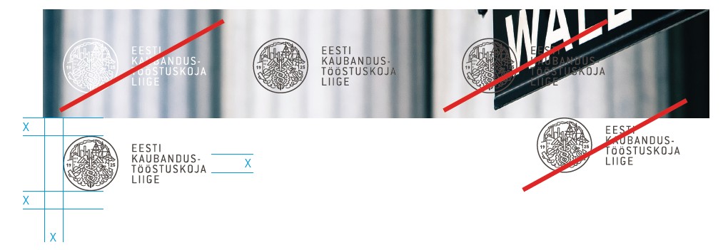 Meie liikmelogo võib kasutada nii vertikaalse kui ka horisontaalse versioonina. Mõlemal puhul võib liikmelogo suurust suurendada või vähendada kuni 10mm-ni, kuid proportsioonid peavad säilima ja sõnaline kombinatsioon peab jääma alati taustaga võrreldes selgelt nähtavaks ja loetavaks. On oluline, et logo ümber oleks piisavalt õhuruumi.